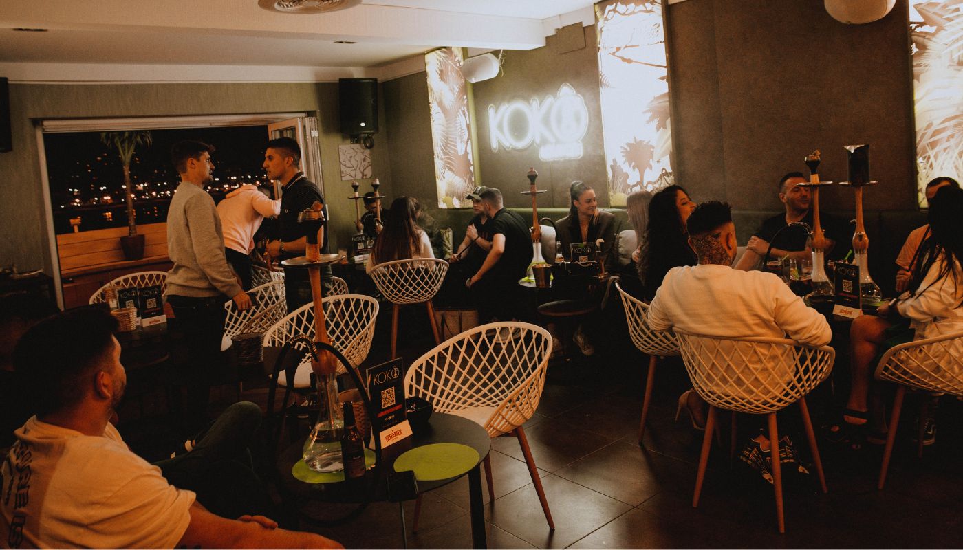 Restaurante moderno de dos plantas con cócteles, terrazas y vistas al mar